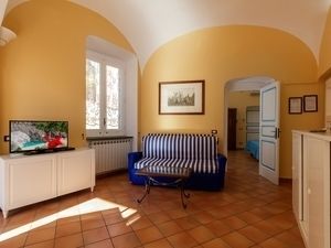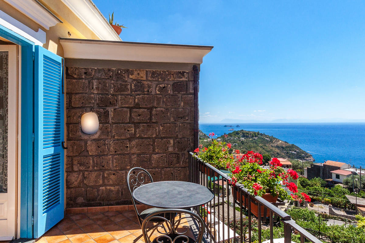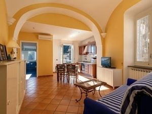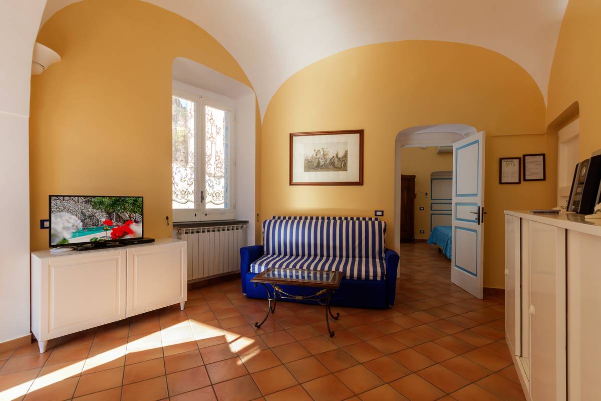 As you ascend your private stairway, you will see your own patio table and chairs where you can relax with a cup of coffee in the morning. As you open the door to "La Rotonda", which is named for one of the three famous Li Galli islands, you enter into the vacation condominium's open and spacious living room, comfortably furnished with a sofa bed, which sleeps two people, TV, and coffee table. Adjoined to the living room is the fully equipped kitchen, complete with four-burner stove and oven, refrigerator/freezer and freezer, and dining table for four people. Off the kitchen is the terrace, where you can enjoy your meal on the patio set, while taking in the amazing panoramic Li Galli islands and sea view.