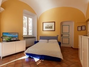The master bedroom is elegantly furnished with a most comfortable double bed, wardrobe, nightstand, and two big bay windows to allow the Mediterranean Sea breeze cool you off. A fun, Mission Impossible "secret door" into a private corridor provides you with an additional private entrance and exit from "La Rotonda" into the church courtyard.